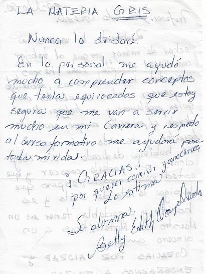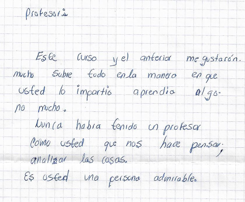Mensajes de alumnos al profesor